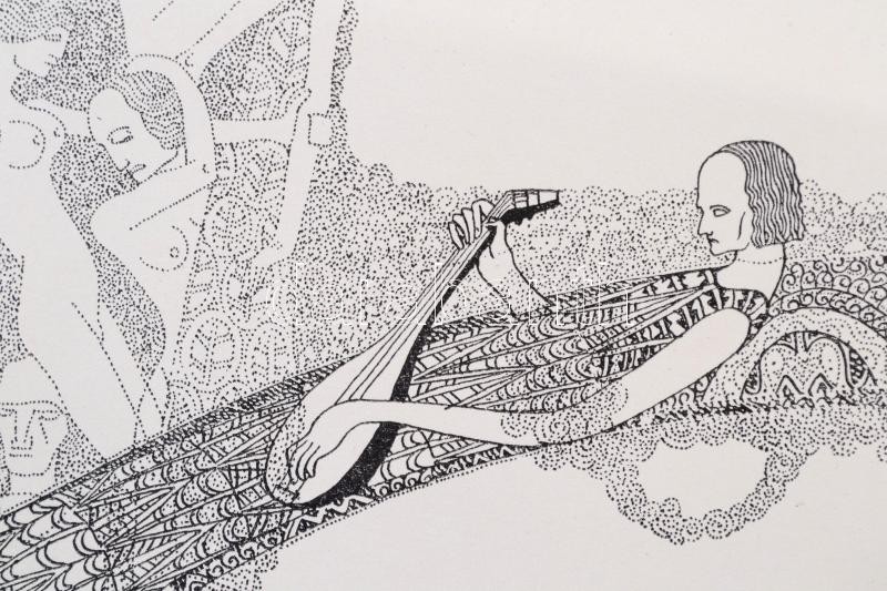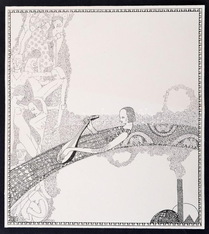 Leírás: Kozma Lajos (1884-1948): Álom, cinkográfia, papír, jelzett a cinkográfián, 18×16,5 cm