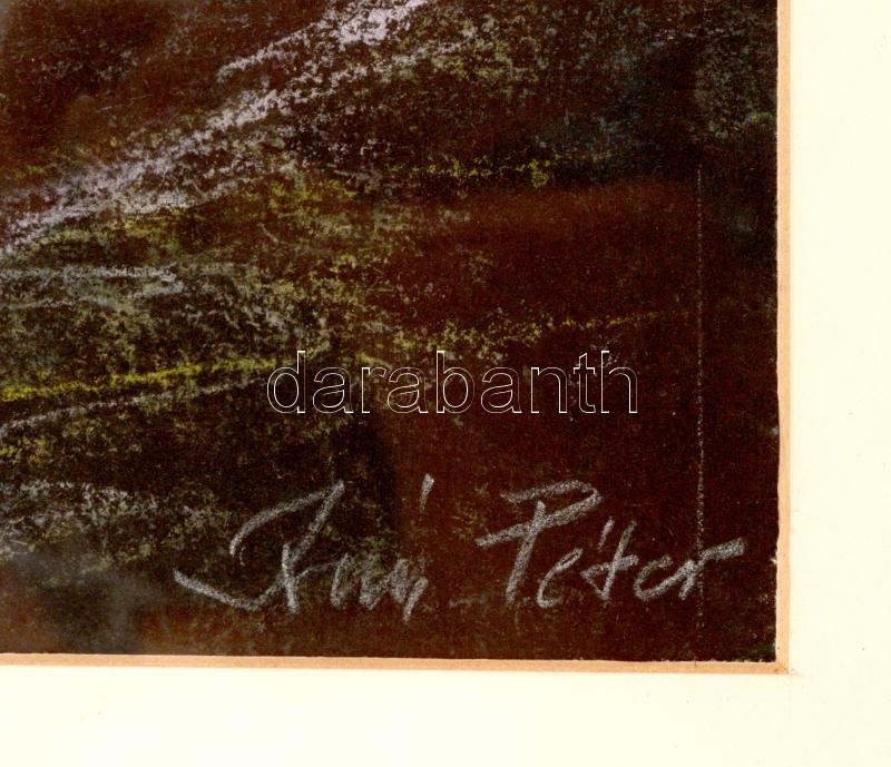 Leírás: Olvashatatlan jelzéssel: Éjszakai fények. Pasztell, papír, üvegezett keretben, 48×65 cm