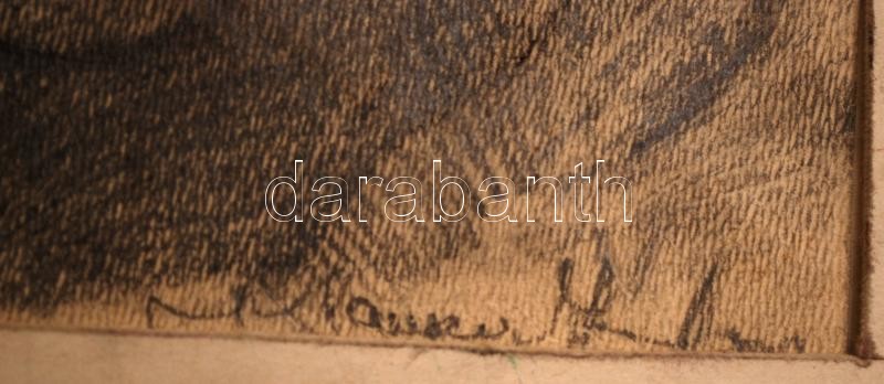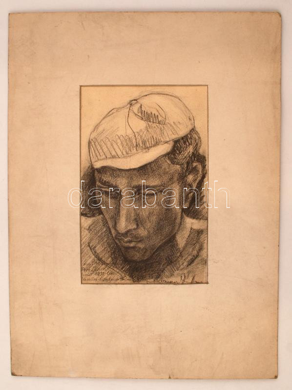 Leírás: Olvashatatlan jelzéssel: Férfi portré. Ceruza, papír, 28×18 cm