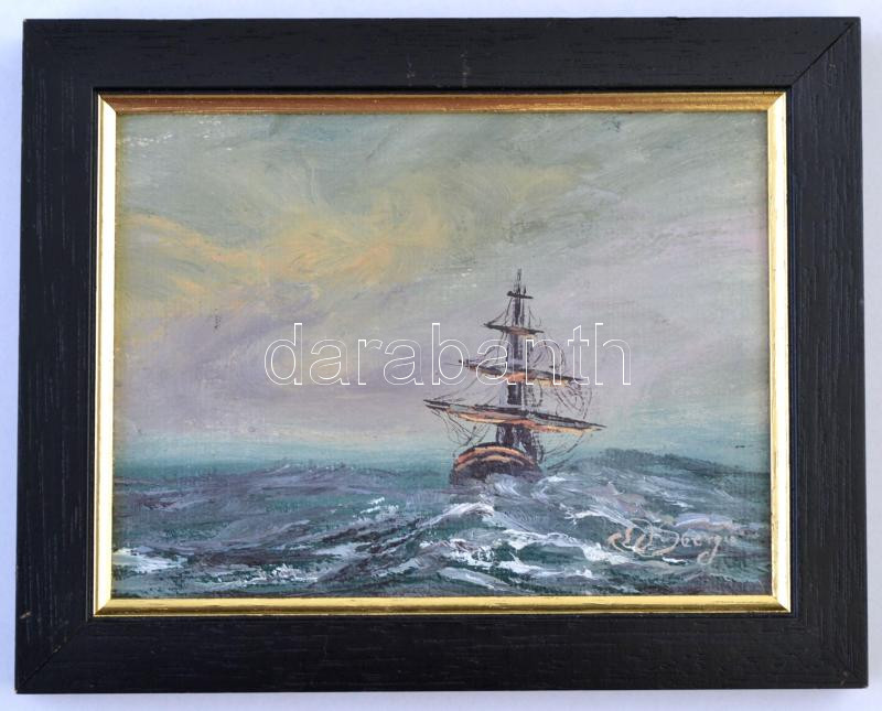 Leírás: Olvashatatlan jelzéssel: Vitorlás a tengeren, olaj, vászon, fa keretben, 9×12 cm