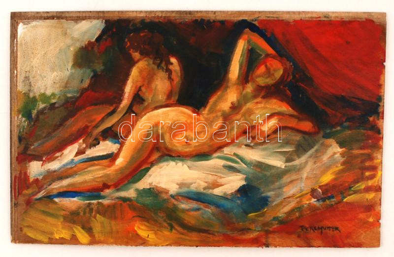 Perlmutter jelzéssel: Fekvő női akt. Olaj, falemez, sérült, 29×47 cm https://www.darabanth.com/hu/285-Gyorsarveres/285.0/Festmeny-mutargy-papirregiseg-egyeb/Festmenyek-es-grafikak~100001/Perlmutter-jelzessel-Fekvo-noi-akt-Olaj-falemez-serult-29C39747-cm~II1357725
