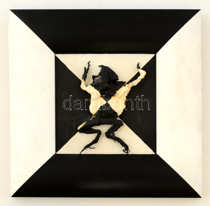 Leírás: Szabó Csaba (1970-): Orgonista feketén-fehéren. Kollázs, karton, keretben, 10×10 cm