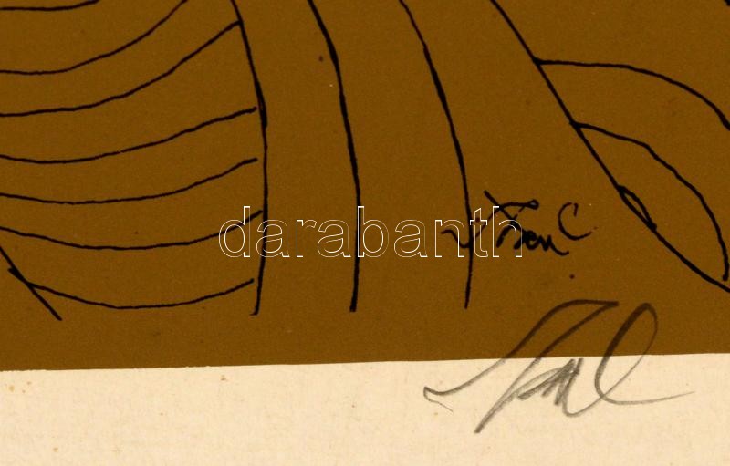 Leírás: Szász Endre (1926-2003): Öreganyám. Szitanyomat (100/100), papír, jelzett, kis szakadással, keretben, 50×34 cm