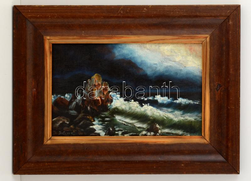 Leírás: Szilassy jelzéssel: Háborgó tenger. Olaj, karton, keretben, 23×39 cm