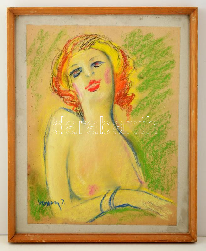 Leírás: Vaszary jelzéssel: Női félakt. Pasztell, papír, üvegezett keretben, 45×35 cm