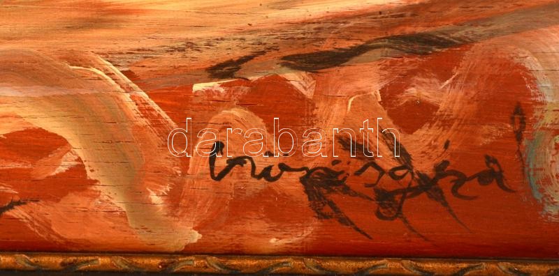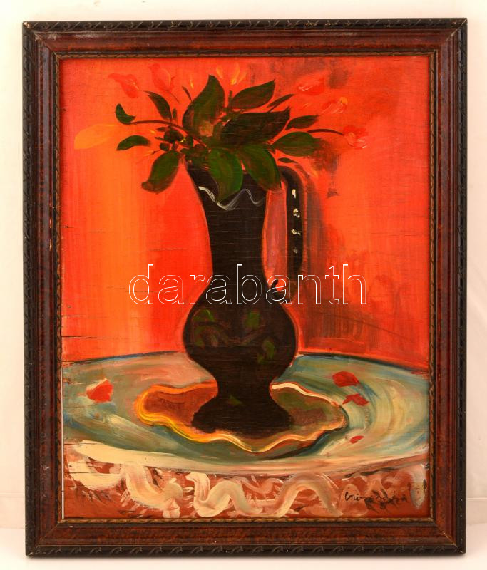 Leírás: Vörös jelzéssel: Csendélet. Olaj, falemez, sérült, keretben, 50×40 cm