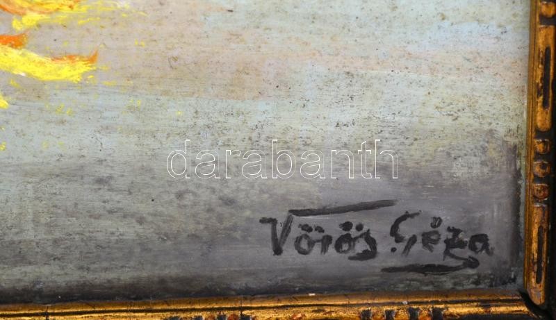 Leírás: Vörös jelzéssel: Virágcsendélet. Olaj, karton, sérült, 44×33 cm