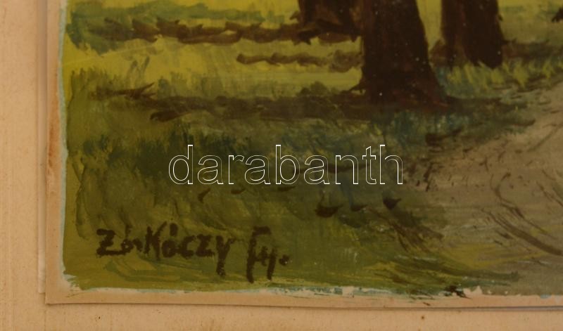 Leírás: Zorkóczy jelzéssel: Fácánok. Tempera, papír, üvegezett, keretben, 17×21 cm