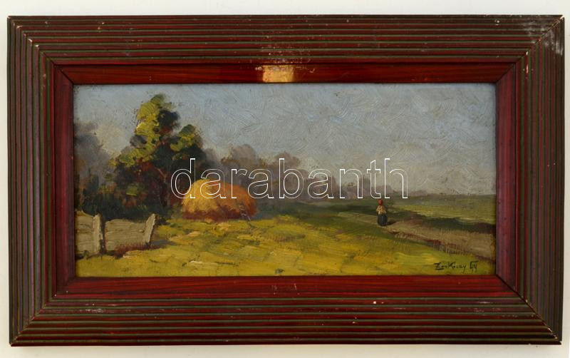 Leírás: Zorkóczy jelzéssel: Magányosan az úton. Olaj, karton, keretben, 16×33 cm