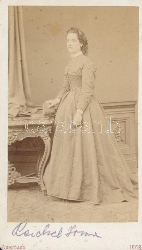 1868 Reichel Irma műtermi fotója vizitkártya méretben, Auerbach Miksa ... https://www.darabanth.com/hu/285-Gyorsarveres/285.0/Festmeny-mutargy-papirregiseg-egyeb/Foto~100019/1868-Reichel-Irma-mutermi-fotoja-vizitkartya-meretben-Auerbach-Miksa-aradi-mutermebol-10x6-~II1482784