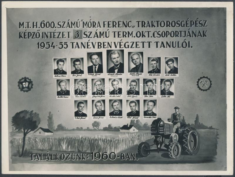 1955 Traktorosgépész tanfolyam végzett tanulói, kistabló 19 nevesített... https://www.darabanth.com/hu/285-Gyorsarveres/285.0/Festmeny-mutargy-papirregiseg-egyeb/Foto~100019/1955-Traktorosgepesz-tanfolyam-vegzett-tanuloi-kistablo-19-nevesitett-portreval-szocreal-g~II1004035