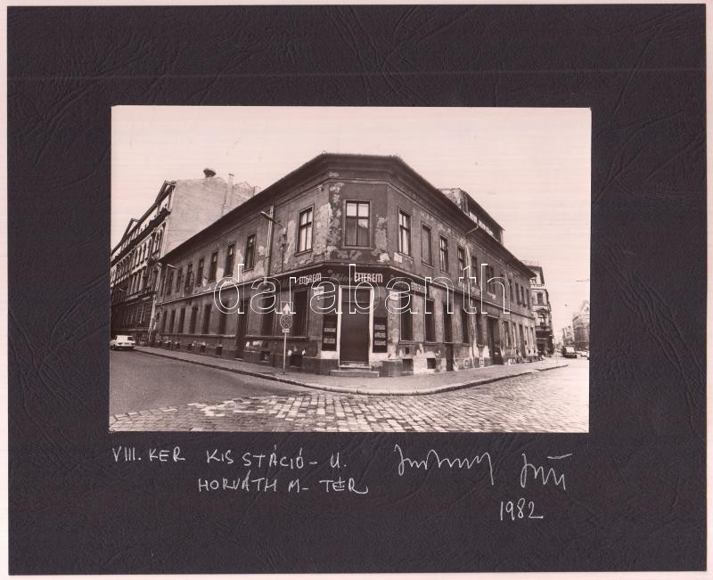 1982 Jankovszky György(1946-): Budapest VIII. kerület, Kis Stáció és Horváth tér sarka, feliratozva, aláírt, pecséttel jelzett, kartonra kasírozva, 11x17 cm