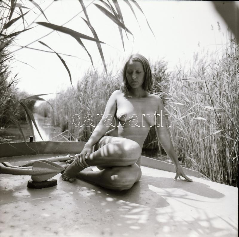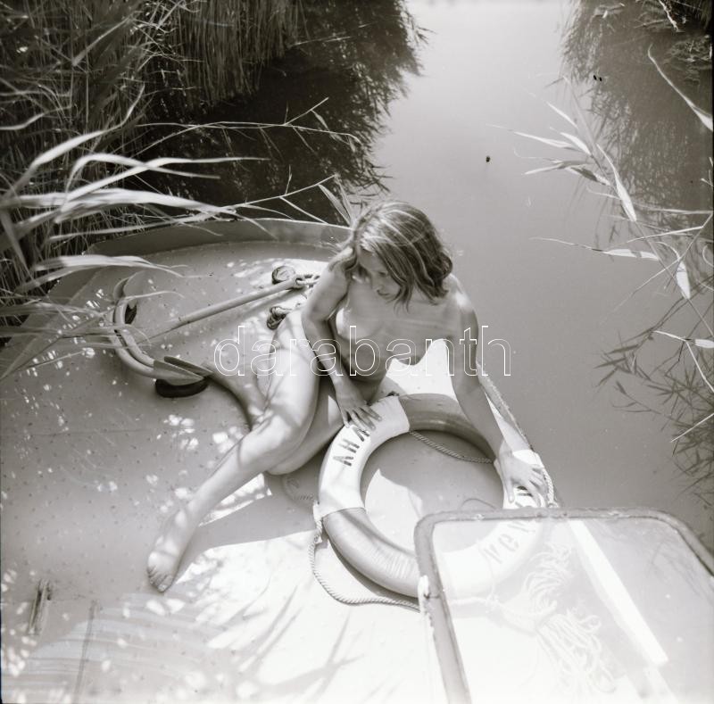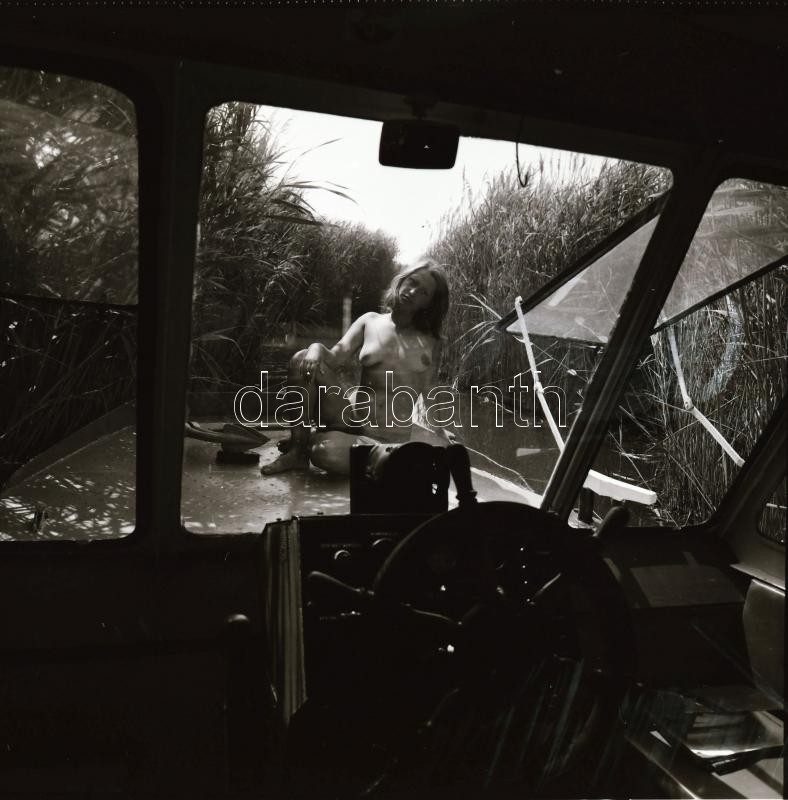Leírás: 1986 Pákozd, Agárd hajó a nádasban pucér matrózlánnyal, 11 db szolidan erotikus felvétel vintage negatívja, 6x6 cm / 11 erotic photo negatives, 6x6 cm