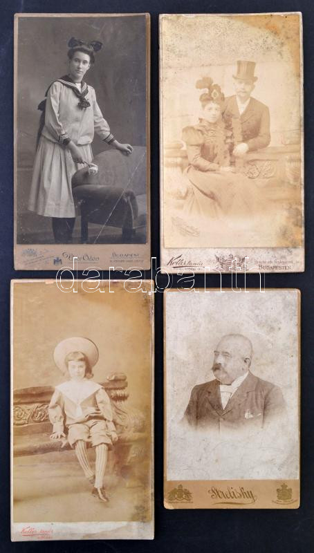Leírás: cca 1880-1910 Portrék, 4 db keményhátú fotó budapesti műtermekből (Strelisky, Koller, Uher), különböző méretben