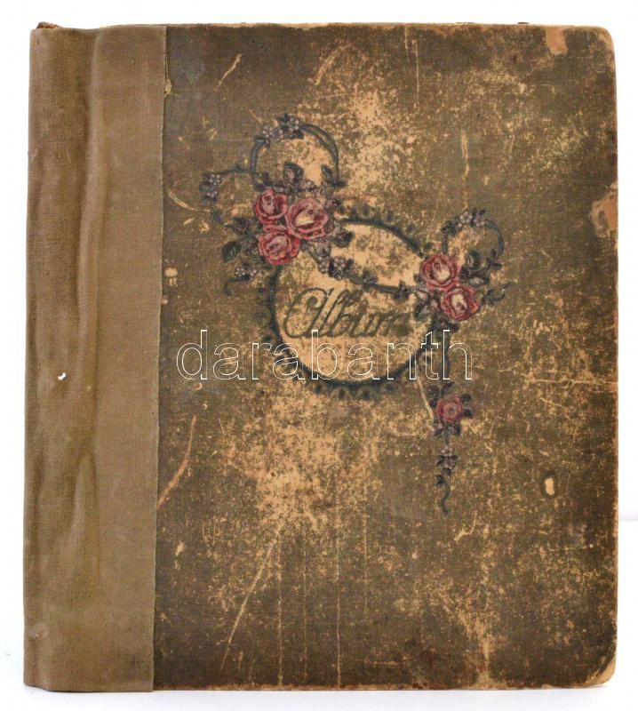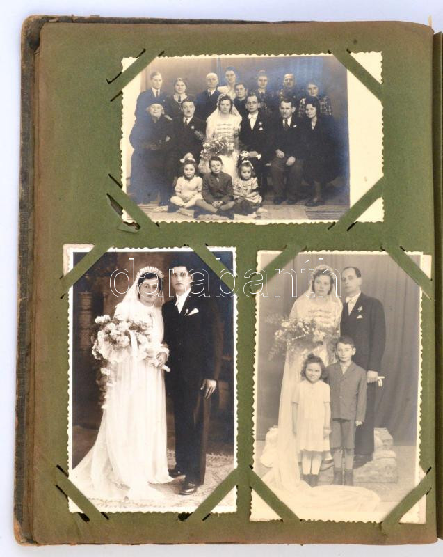 Leírás: cca 1880-1940 Családi fotóalbum különféle fotókkal, köztük katonai és fotólapok is, különböző méretben, összesen kb. 100 db