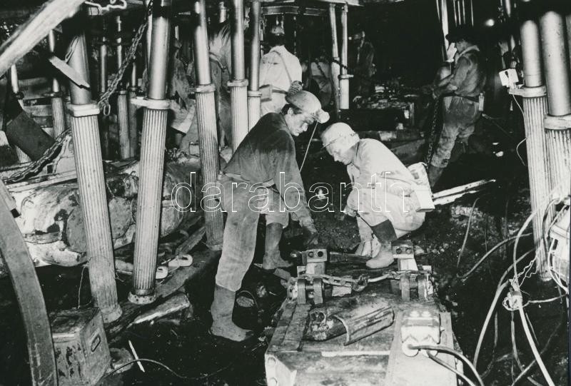 Leírás: cca 1979 Mélyművelésű bányák: szénbánya Pécs alatt, bauxit bánya Nyírádon, 2 db vintage fotó, 16x23 cm