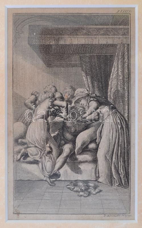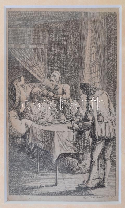 Leírás: Chodowieczki Daniel Nikolaus, (1726-1801) Két rézmetszet. Üvegezett keretben. / 2 etchings i n glazed frame 22x27 cm