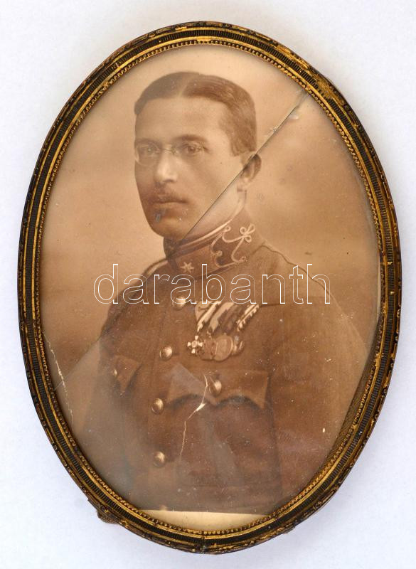 Leírás: Lehár Antal, báró (1876-1962) katonatiszt, Lehár Ferenc zeneszerző öccse üvegezett ovális réz törött üvegezett keretben, 11×8 cm