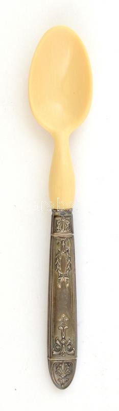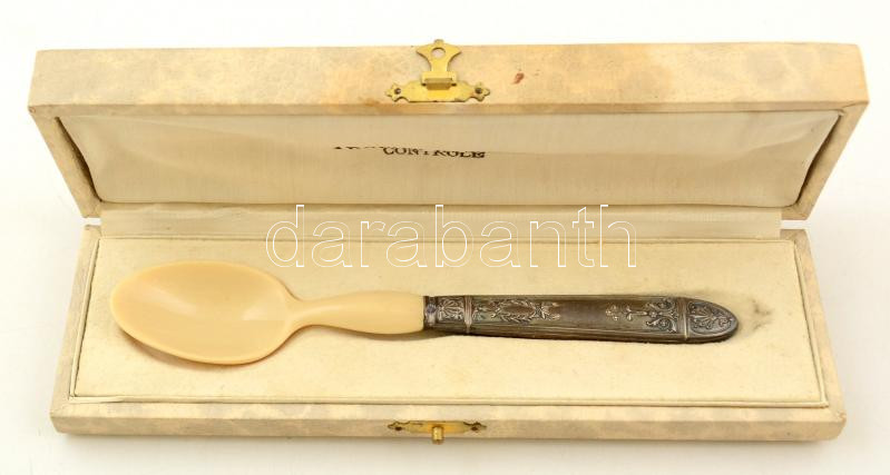 Ezüst (Ag.) nyelű csont kanál, jelzett (francia), eredeti dobozában, h... https://www.darabanth.com/hu/285-Gyorsarveres/285.0/Festmeny-mutargy-papirregiseg-egyeb/Mutargyak-antikvitas~100004/Ezust-Ag-nyelu-csont-kanal-jelzett-francia-eredeti-dobozaban-h16-cm-brutto22-g~II1483169