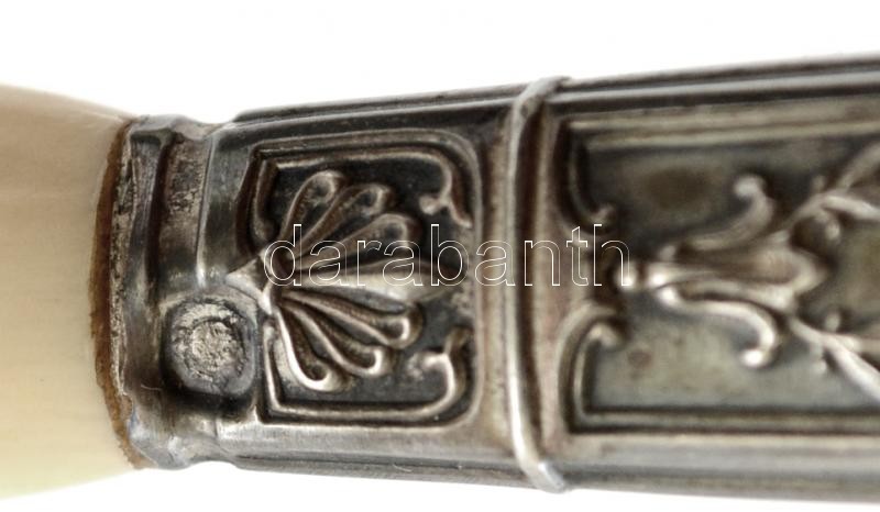 Leírás: Ezüst (Ag.) nyelű csont kanál, jelzett (francia), eredeti dobozában, h:16 cm, bruttó:22 g