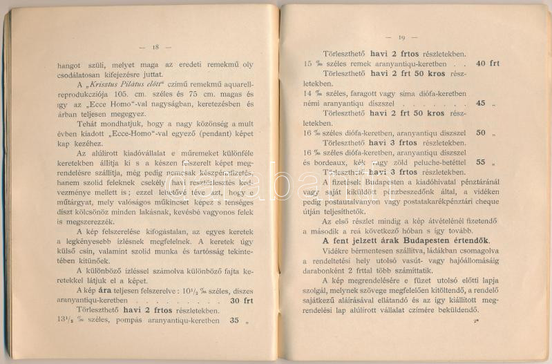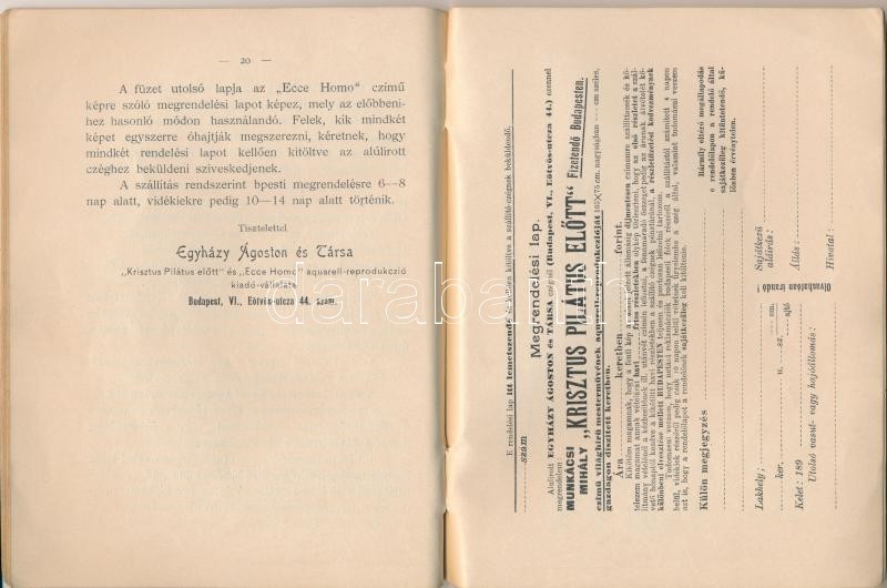 1897 Munkácsy Mihály festménye a "Krisztus Pilátus előtt". Írta Simkó József, Budapest, Légrády testvérek. Egyházy Ágoston és társa kiadása. Foltos, de jó állapotban, a végén reprodukció megrendelőlapokkal, 20 p.