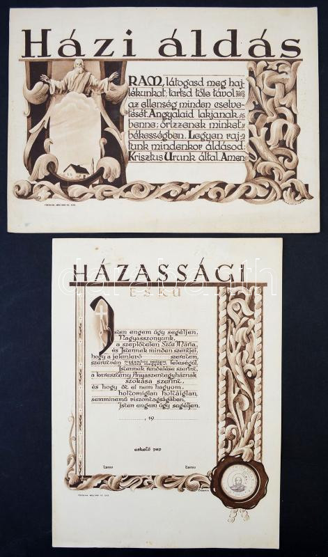 Leírás: 1948 Házassági eskü és Házi áldás használatlan nyomtatvány, 2 db