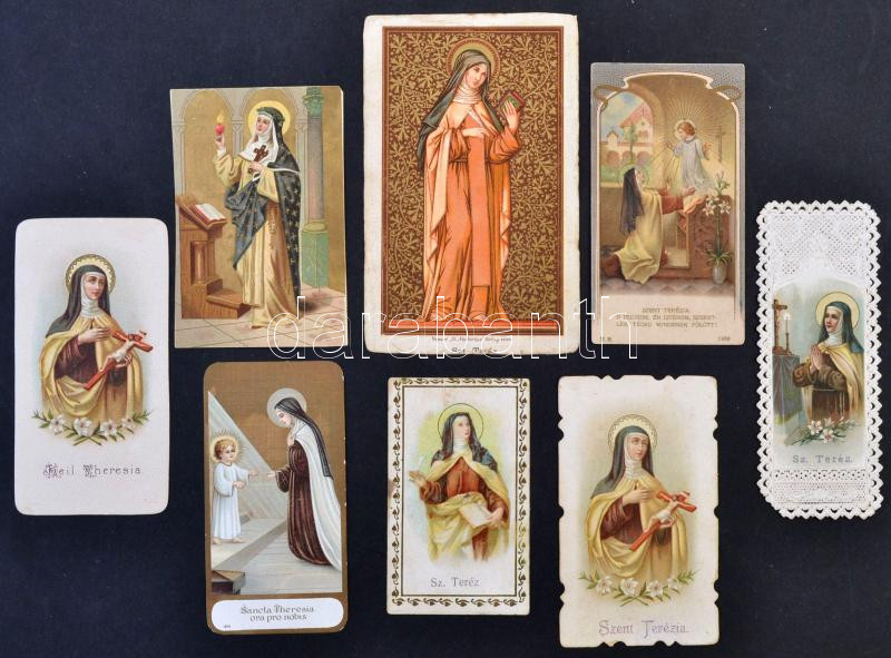Leírás: 8db Avilei Nagy Szent Teréz szentkép, 11x7 cm és 7x4 cm közötti méretben