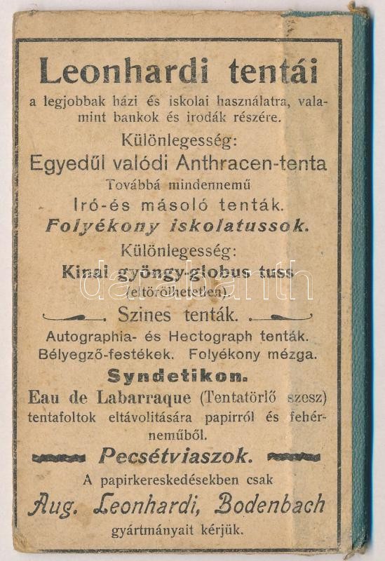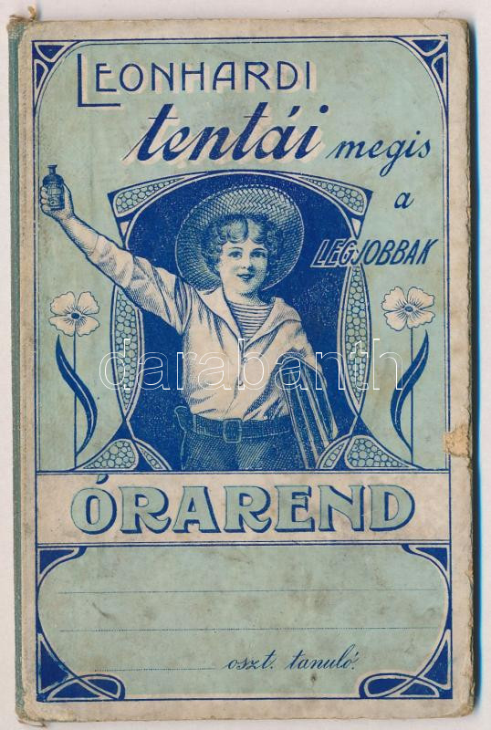 Leírás: cca 1910 Leonhardi tentái szecessziós, reklámos órarend füzet. Kitöltetlen 8x11 cm