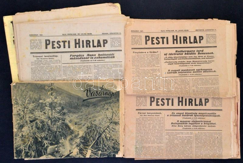 cca 1920-1930 8 db újság a revízió híreivel, képes mellékletek a társa... https://www.darabanth.com/hu/285-Gyorsarveres/285.0/Festmeny-mutargy-papirregiseg-egyeb/Nyomtatvanyok~100027/cca-1920-1930-8-db-ujsag-a-revizio-hireivel-kepes-mellekletek-a-tarsasagi-esemenyekkel~II1461446
