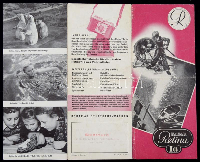 Leírás: cca 1920-1940 Kodak Retina Ia, német nyelven, kissé viseltes állapotban, 20x8 cm.