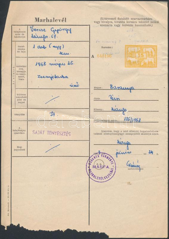 10 db marhalevél az 1950-es évekből https://www.darabanth.com/hu/285-Gyorsarveres/285.0/Festmeny-mutargy-papirregiseg-egyeb/Okmanyok~100016/10-db-marhalevel-az-1950-es-evekbol~II744599