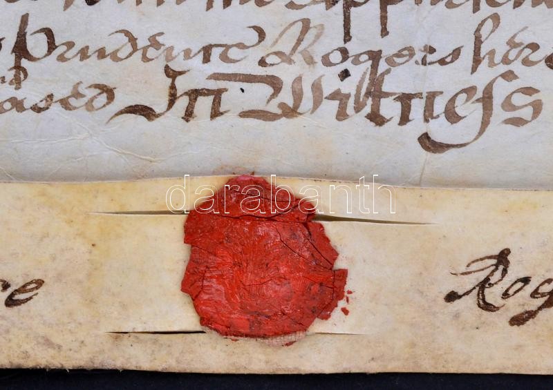1763 Bérleti szerződés a woolastoni özvegy Prudence Rogers és Selwyn James gloucesteri polgár között, angol nyelven, pergamen, rányomott viaszpecséttel /