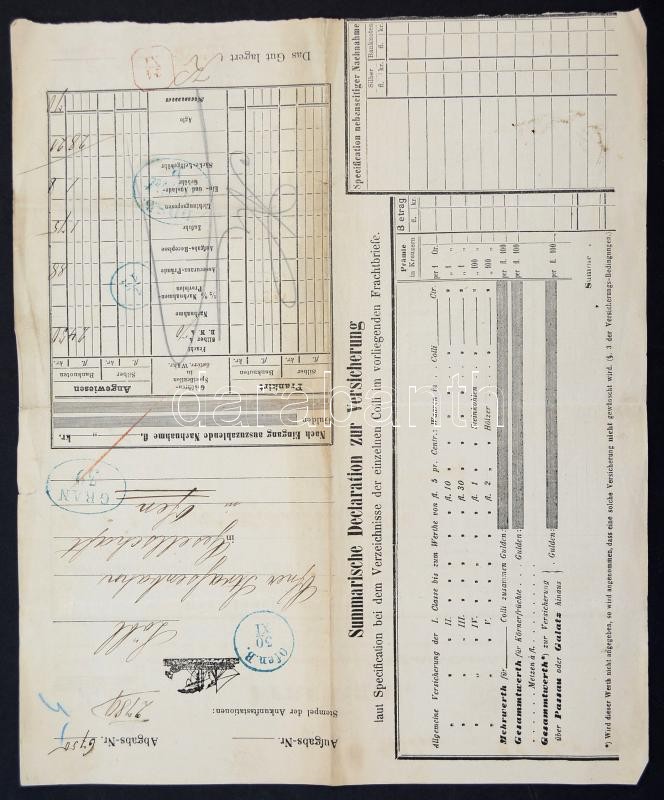 Leírás: 1869 DDSG fuvarlevél / DDSG bill of freight.
