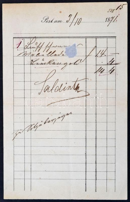 Leírás: 1871 Pest, Schwanfelder&Staffenberger díszes számla