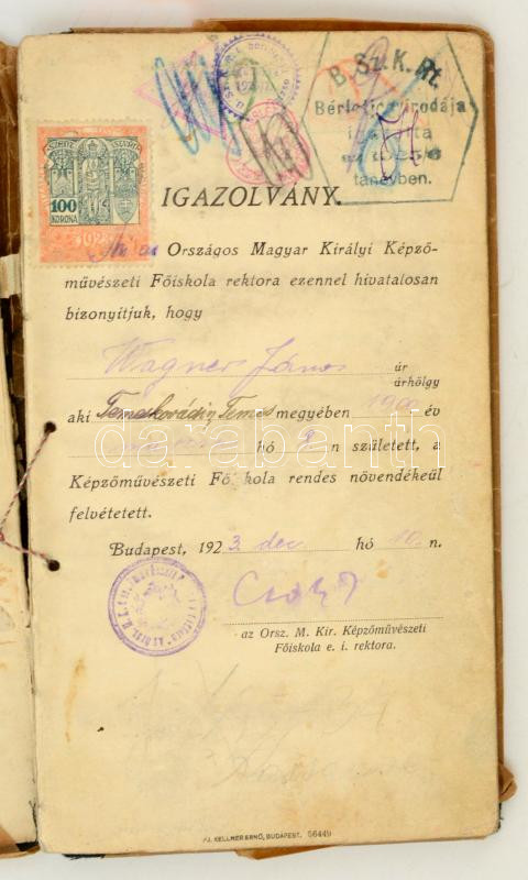 1923-1929 Országos Magyar Királyi Képzőművészeti Főiskolai hallgató le...
