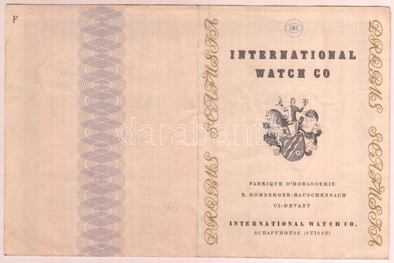 Régi IWC Schaffhausen karóra garancia papír. https://www.darabanth.com/hu/285-Gyorsarveres/285.0/Festmeny-mutargy-papirregiseg-egyeb/Okmanyok~100016/Regi-IWC-Schaffhausen-karora-garancia-papir~II1494676