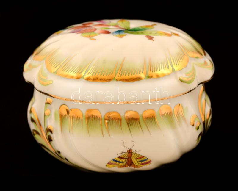 Herendi Viktória mintás bonbonier, kézzel festett, jelzett, hibátlan, ... https://www.darabanth.com/hu/285-Gyorsarveres/285.0/Festmeny-mutargy-papirregiseg-egyeb/Porcelan~100007/Herendi-Viktoria-mintas-bonbonier-kezzel-festett-jelzett-hibatlan-d11-cm-m7-cm~II1440873