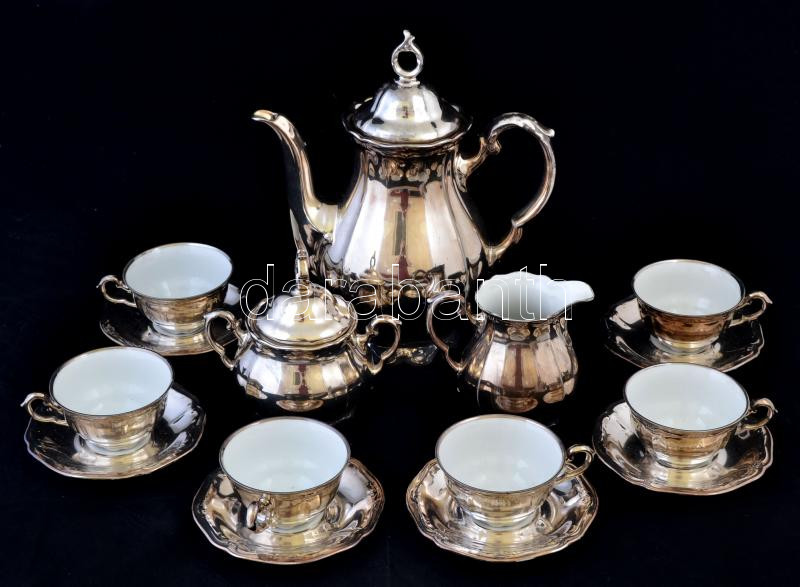 Leírás: Oscar Schaller Bavaria teás készlet, kopott, jelzett (1000/1000 feinsilber)