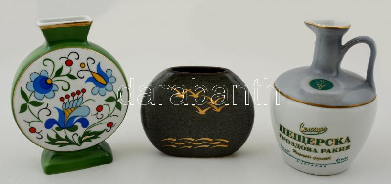 Leírás: Porcelán tétel: kulacs, kiöntő, váza, kettő jelzett, hibátlanok, m:10-15 cm