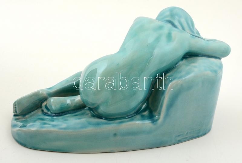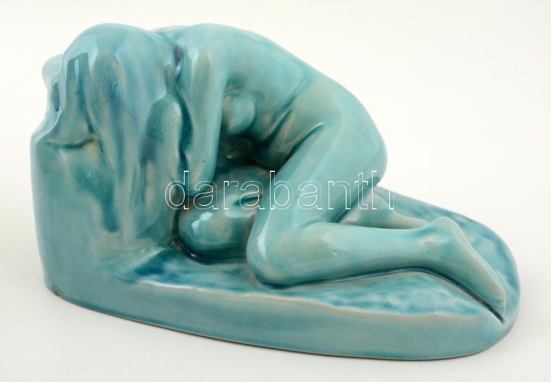 Leírás: Zsolnay alapmázas fekvő akt, jelzett, apró lepattanással, 24x14x12 cm