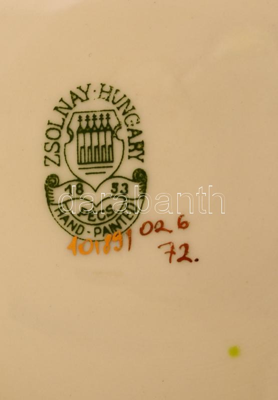 Zsolnay pillangó mintás hamuzó, kézzel festett, jelzett, hibátlan, d:1... https://www.darabanth.com/hu/285-Gyorsarveres/285.0/Festmeny-mutargy-papirregiseg-egyeb/Porcelan~100007/Zsolnay-pillango-mintas-hamuzo-kezzel-festett-jelzett-hibatlan-d15-cm~II1403561