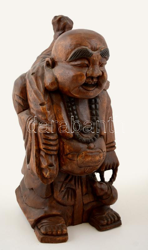 Leírás: Jelzés nélkül: Nevető Buddha. Faragott fa, m:41 cm
