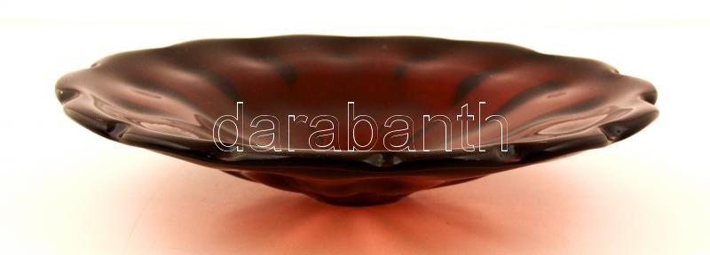 Leírás: Asztali üveg dísztál, apró karcolásokkal, d: 27 cm, m: 5,5 cm