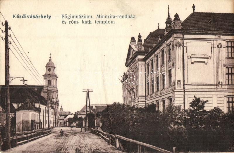 Leírás: Kézdivásárhely, Targu Secuiesc; Főgimnázium, minorita rendház, római katolikus templom (ázott sarkak / wet corners)