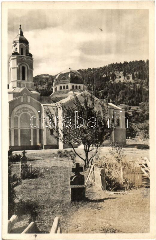 Leírás: Brusztura, Lopuhiv; Új templom, sírkert, Dr. Peitler Gyula felvétele, Magyar Turista Egyesület kiadása / New church, graveyard
