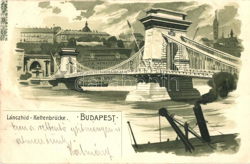 Leírás: Budapest, Lánchíd, litho