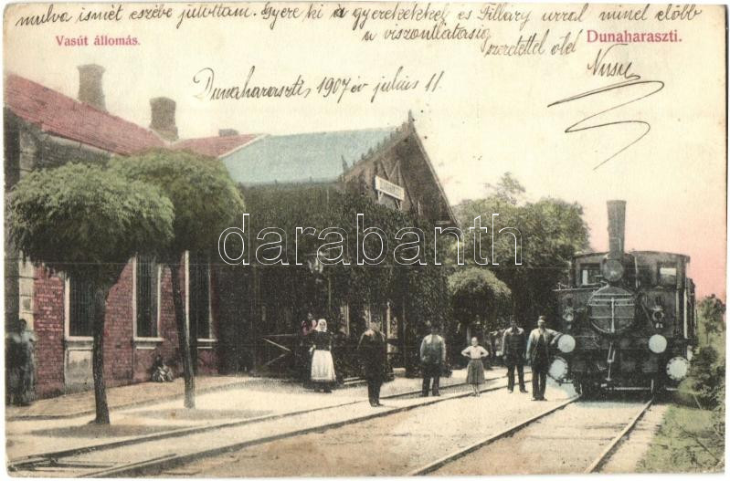 Dunaharaszti, vasútállomás, gőzmozdony, Adler Adolf kiadása (EK) https://www.darabanth.com/hu/285-Gyorsarveres/285.0/Kepeslapok/Magyarorszag~200005/Dunaharaszti-vasutallomas-gozmozdony-Adler-Adolf-kiadasa-EK~II1491181