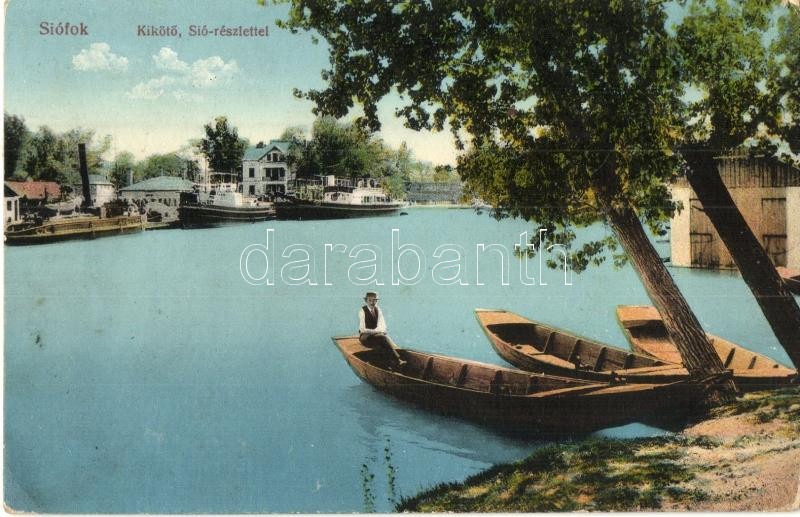 Siófok, kikötő, csónakok, gőzhajó (EK) https://www.darabanth.com/hu/285-Gyorsarveres/285.0/Kepeslapok/Magyarorszag~200005/Siofok-kikoto-csonakok-gozhajo-EK~II1490884