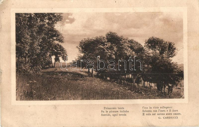 Landscape, art postcard, G. Carducci poem, VAT 21895 'K.u.K. Mari... https://www.darabanth.com/hu/285-Gyorsarveres/285.0/Kepeslapok/Muveszlapok~200073/Landscape-art-postcard-G-Carducci-poem-VAT-21895-KuK-Marinefeldpostamt-Pola-kis-szakadas-~II1485117