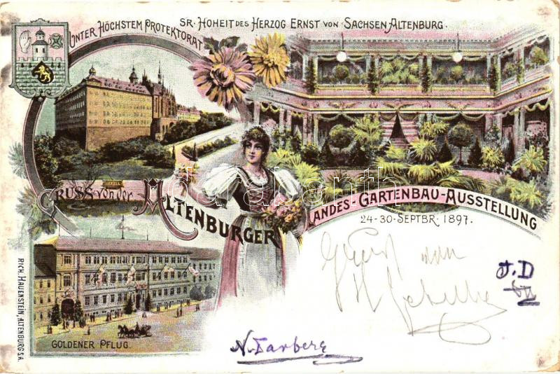 1897 Altenburg in S.A. Altenburges Landes-Gartenbau-Ausstellung, Verlag Richard Hauenstein; agricultural and gardening exposition, Gruss aus floral card